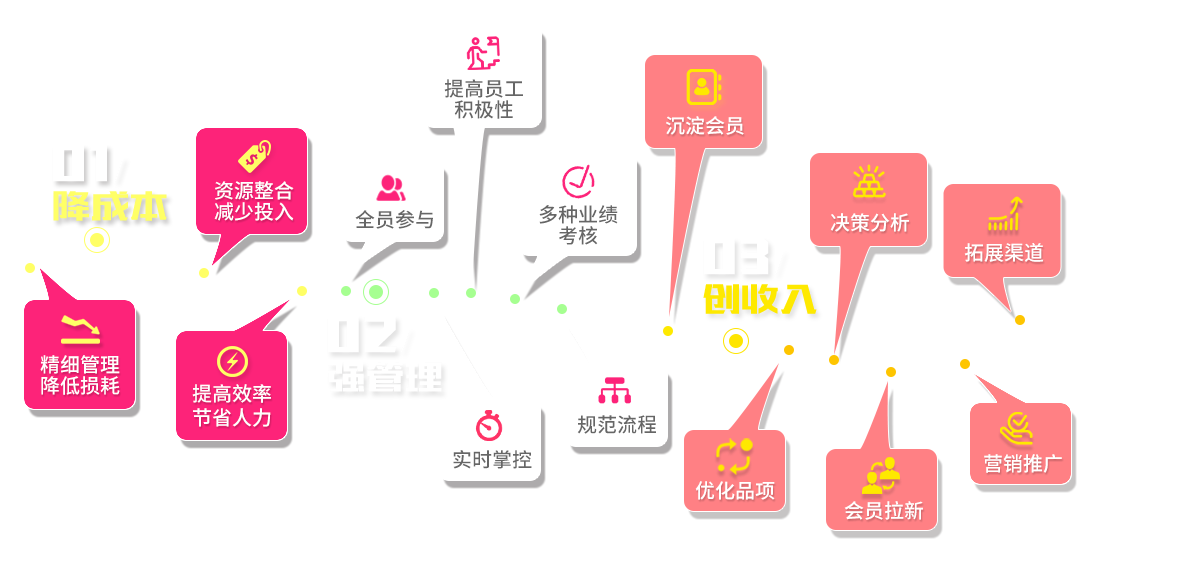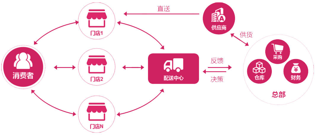 打破传统企业多系统并行的局面,真正实现包括顾客、门店、商品、营销、交易、采购、物流配送、财务管控的全面统一,打通并提升各个经营环节效率